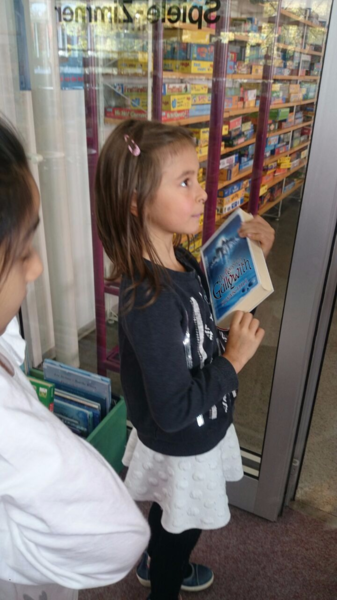 Die sehr freundlichen Mitarbeiter der Bücherei haben mit den Kindern eine Bücherei-Rallye durchgeführt, mit deren Hilfe sie lernen konnten, sich dort zurechtzufinden.