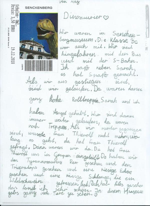 In der letzten Schulwoche vor den Weihnachtsferienwaren wir gemeinsam mit der Klasse 3c in Frankfurt im Senckenbergmuseum.